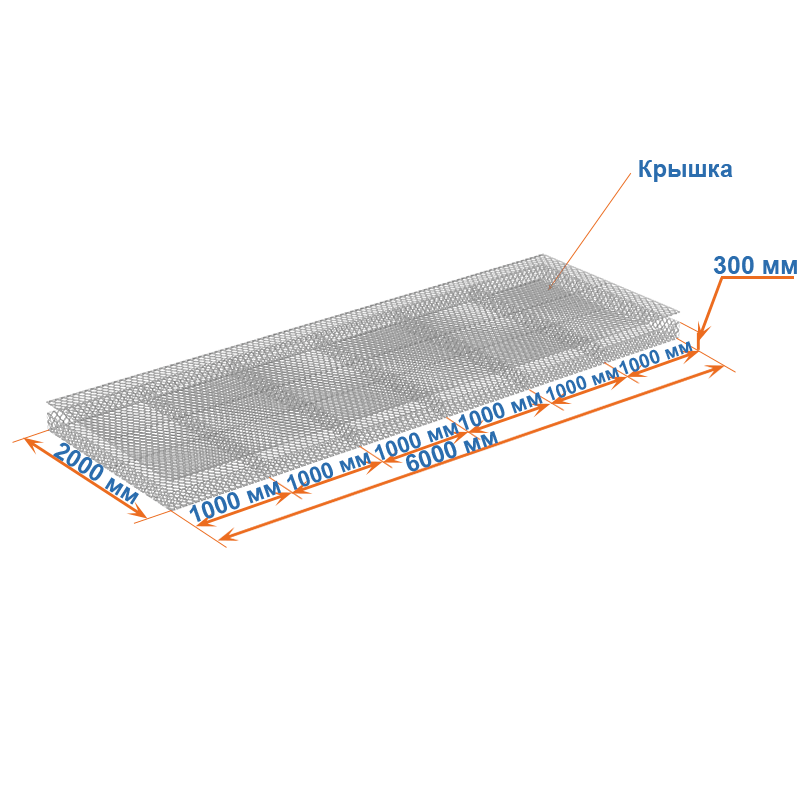 Габионные матрасы Рено 6x2x0,3: ячейка 80х100, диаметр проволоки 2,7 мм, покрытие Цинк.
