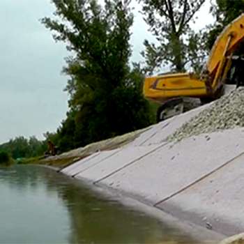 Геотекстиль часто используется в проектах для стабилизации берегов рек и каналов, чтобы обеспечить дополнительный слой поддержки и защиты почвы. Обычно он укладывается слоями, причем нижний слой служит основанием для грунта, а верхние слои обеспечивают укрепление и защиту от эрозии.