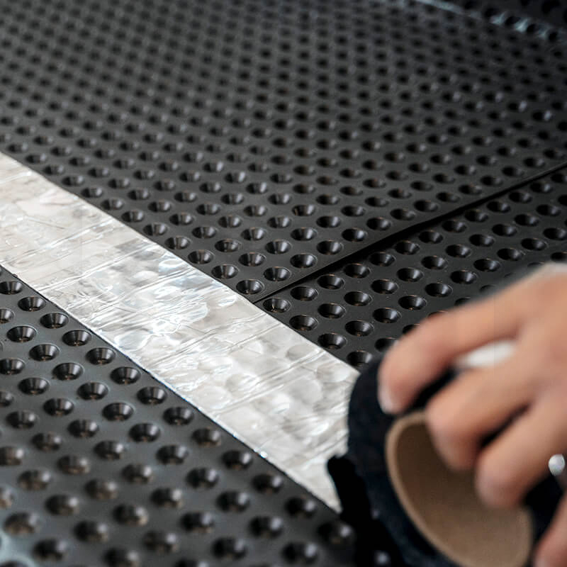 • Соединить полотна профилированной мембраны LockDown внахлест на 200 мм (4 шипа).